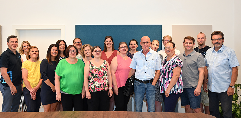 Heute fand die offizielle Verabschiedung unseres Amtswartes Franz Lendwith in den wohlverdienten Ruhestand statt. Seit mehr als 40 Jahren kümmerte sich der stets aktive Mitarbeiter um diverse Amtswege und war für seine Aktentasche bekannt, die er immer bei sich trug. Da der Dienstposten nicht nachbesetzt wird, bekam er von seinen Arbeitskollegen heute diese Aktentasche mit Andenken an seine Amtszeit geschenkt.
