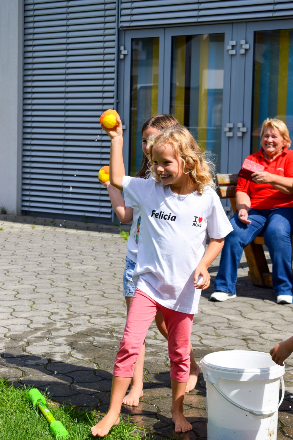 Bei lustigen Wettbewerben wie Wasser-Spritzpistolen-Staffel oder Eierlauf konnten sich die Kinder so richtig austoben.